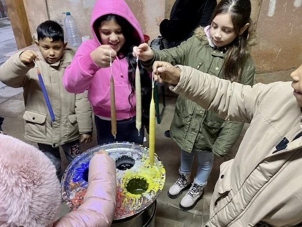 In diesem Jahr stand das Thema Licht und Wärme im Mittelpunkt. Die Idee Kerzenziehen mit den Kindern kam bei den Kindern sehr gut an. Die Kinder kannten diese Art von “Basteln” überhaupt nicht (Kerzenziehen ist eher unbekannt in Rumänien) Erst war es etwas chaotisch, die Kinder wussten nicht richtig mit der Geduld um zu gehen. Doch fanden sie dann aber bal heraus dass bei jedem Eintauchen etwas vom Wachs am Docht hängenbleibt. Bald entstanden richtig schöne Kerzen.